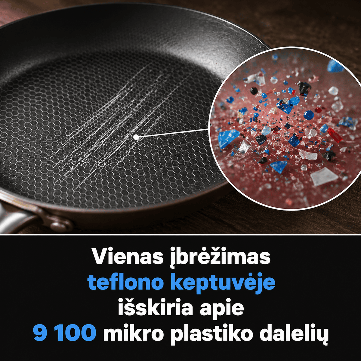 Nepridegančios keptuvės tapo virtuvės kasdienybe, nes jos patogios, lengvai valomos ir reikalauja mažiau riebalų. Tačiau būtent dėl šio įprastumo vartotojai dažnai nepastebi, kada danga jau pradeda irti. Naujesni laboratoriniai vertinimai parodė, kad vienas paviršiaus įbrėžimas PTFE dangoje gali išskirti apie 9 100 mikro ir nanoplastiko dalelių. Tai keičia požiūrį į tai, kas anksčiau atrodė tik menkas nusidėvėjimas.